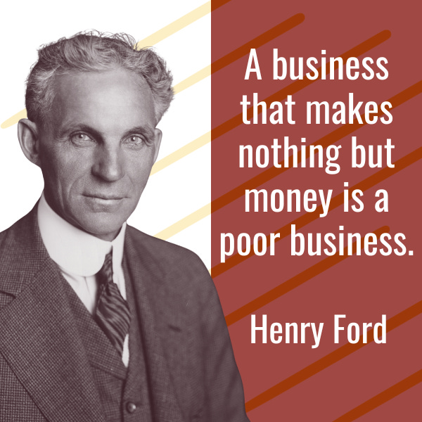 Henry Ford, one of America’s most influential and sometimes infamous capitalists, who revolutionized mass production and built one of history’s great industrial fortunes, believed that a business focused solely on making money was fundamentally poor.