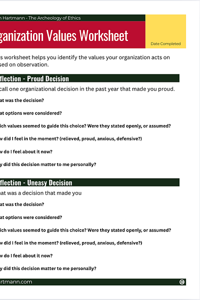 Decision pattern analysis provides the most reliable method for detecting institutional values. Major organizational decisions — acquisitions, layoffs, product launches, crisis responses — reveal priority hierarchies under pressure. The values that survive resource constraints and timeline pressure represent the organization's true ethical operating system.