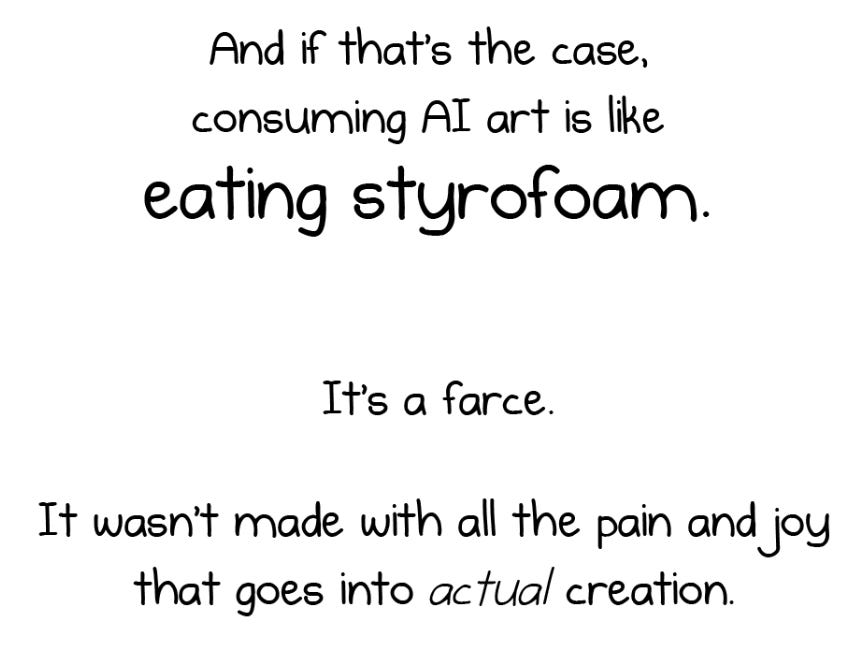I think that working with AI when writing fiction is a different matter; I’ve played with that idea and its... problematic. AI isn’t good at writing things with tone or subtext, and I think critiques of AI usage in that space are much more persuasive.